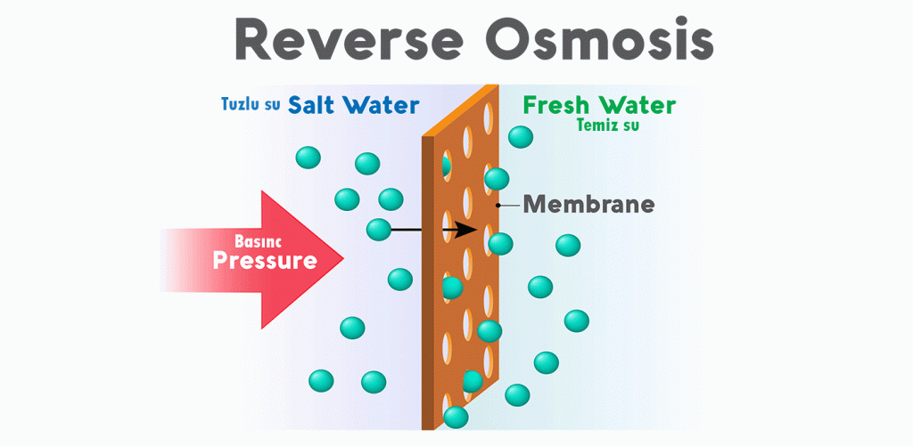 Besleme suyu, basınç altında (osmotik basıncın üstesinden gelmek için yeterli basınç) RO membranına girdiğinde su molekülleri yarı geçirgen zardan geçmekte ve tuzlar ve diğer kirletici maddelerin geçmesine izin verilmemektedir.
